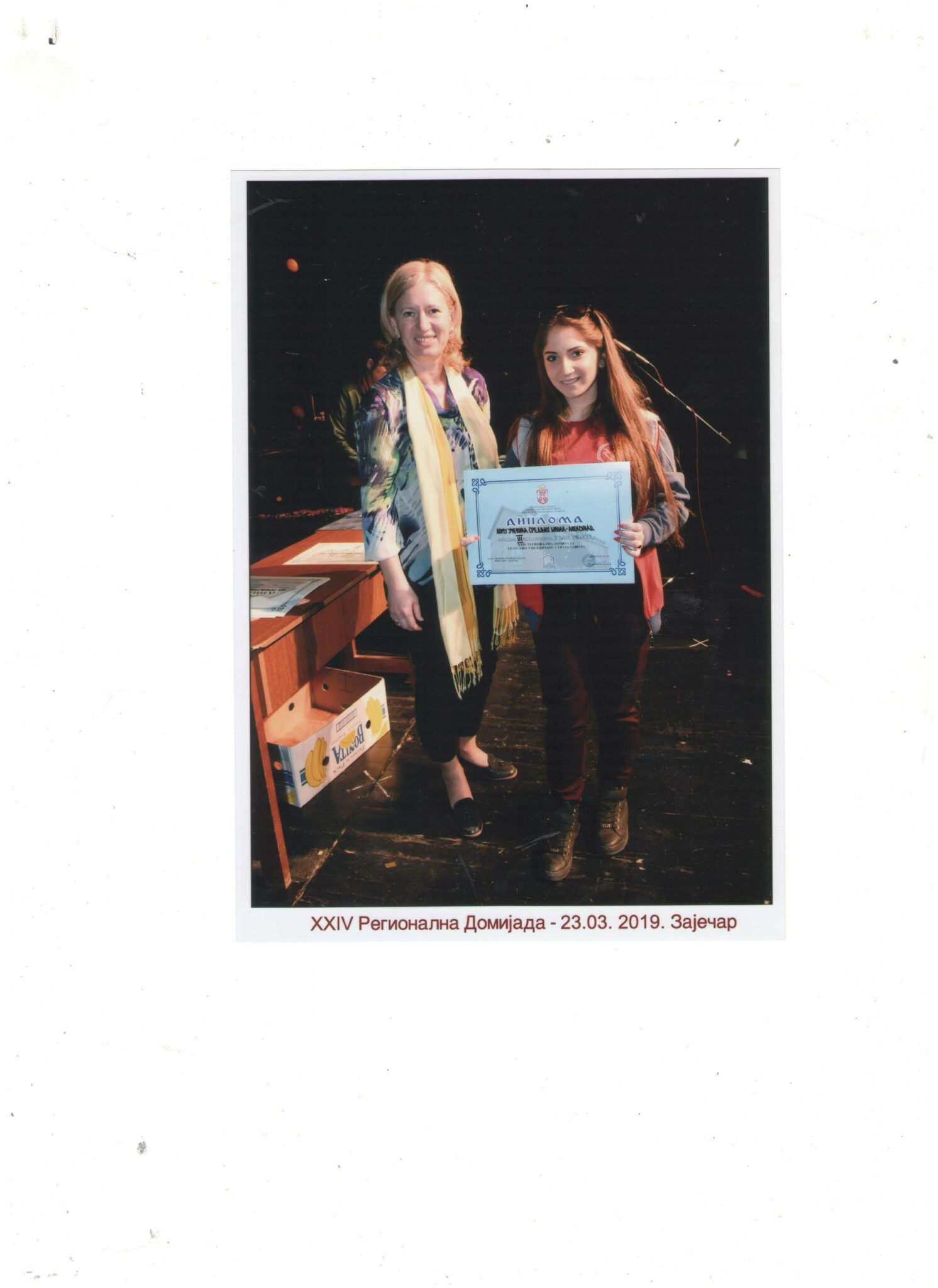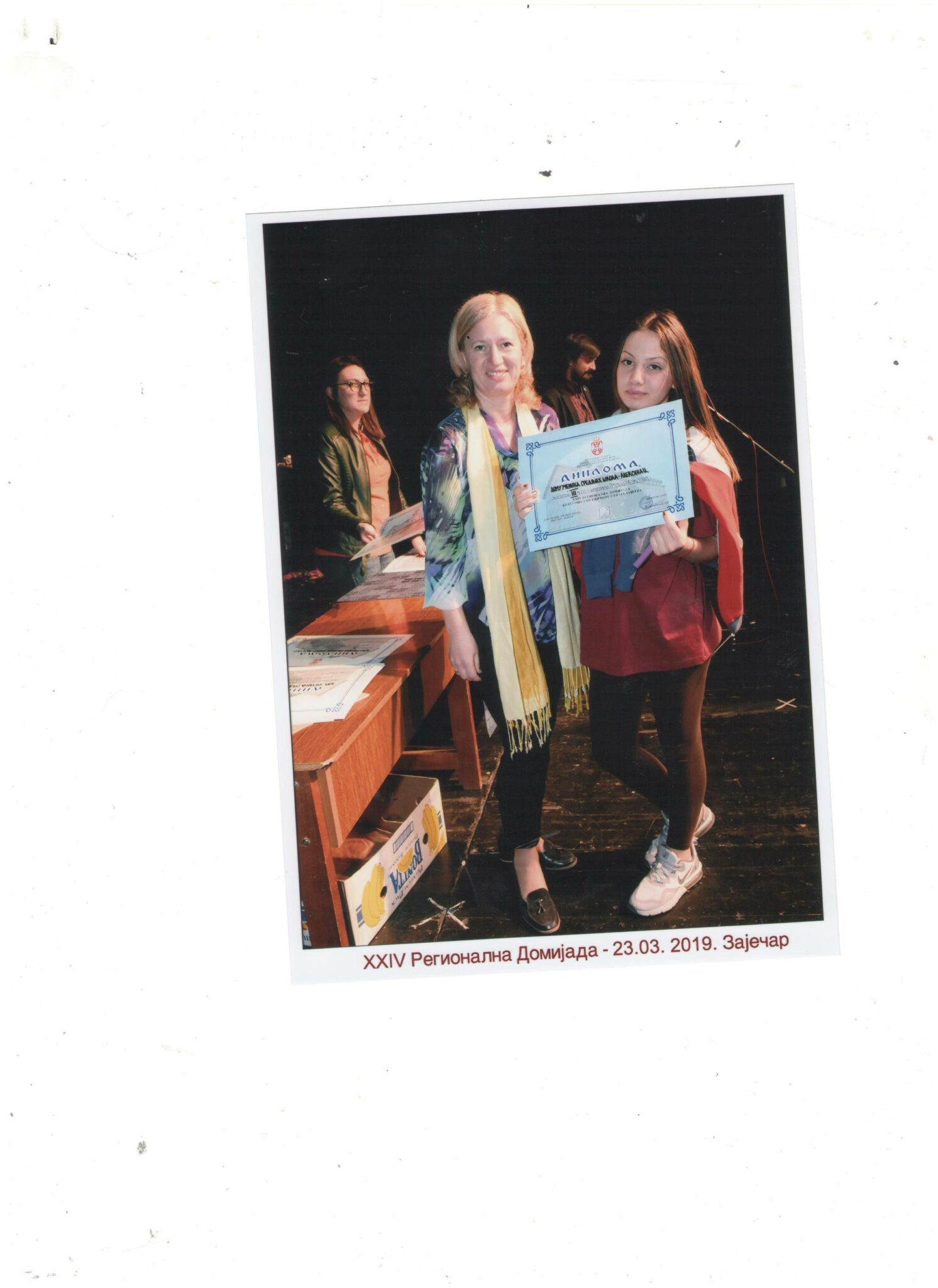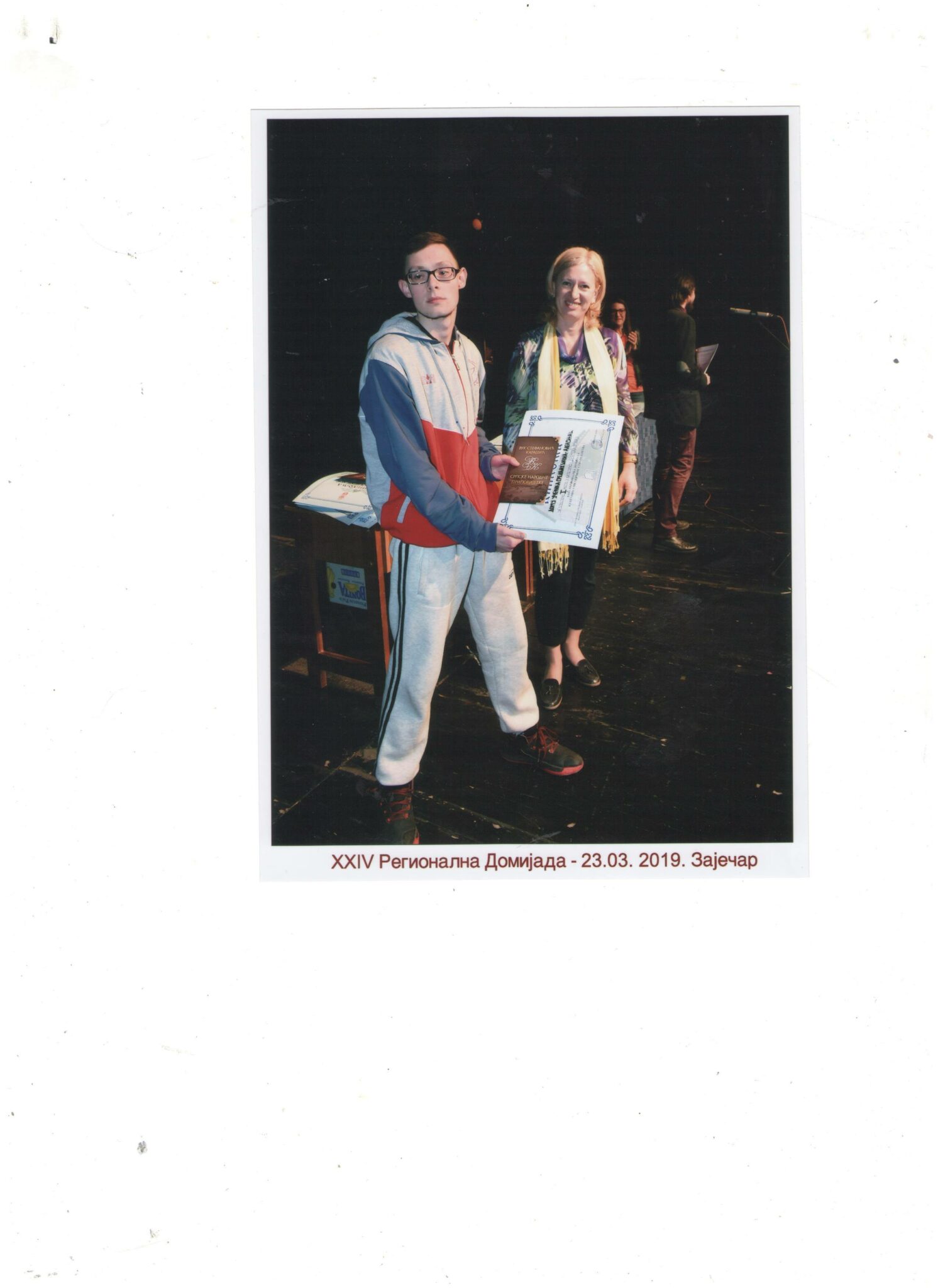 Дана 23.03.2019.год. одржана је Културно-уметничка Домијада у Зајечару. Ученици нашег Дома представили су се у следећим категоријама: